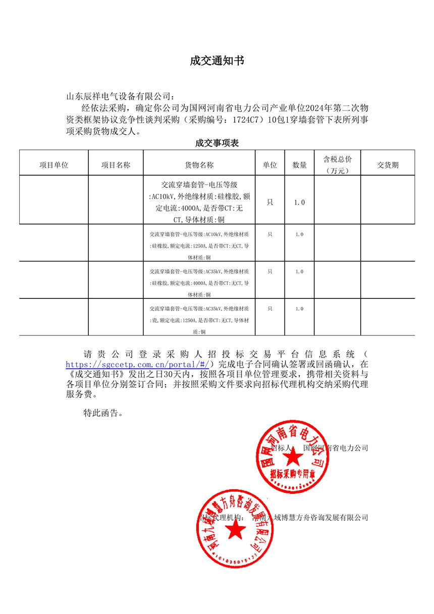 • 2024.11.29 交流穿墻套管中標(biāo)通知書